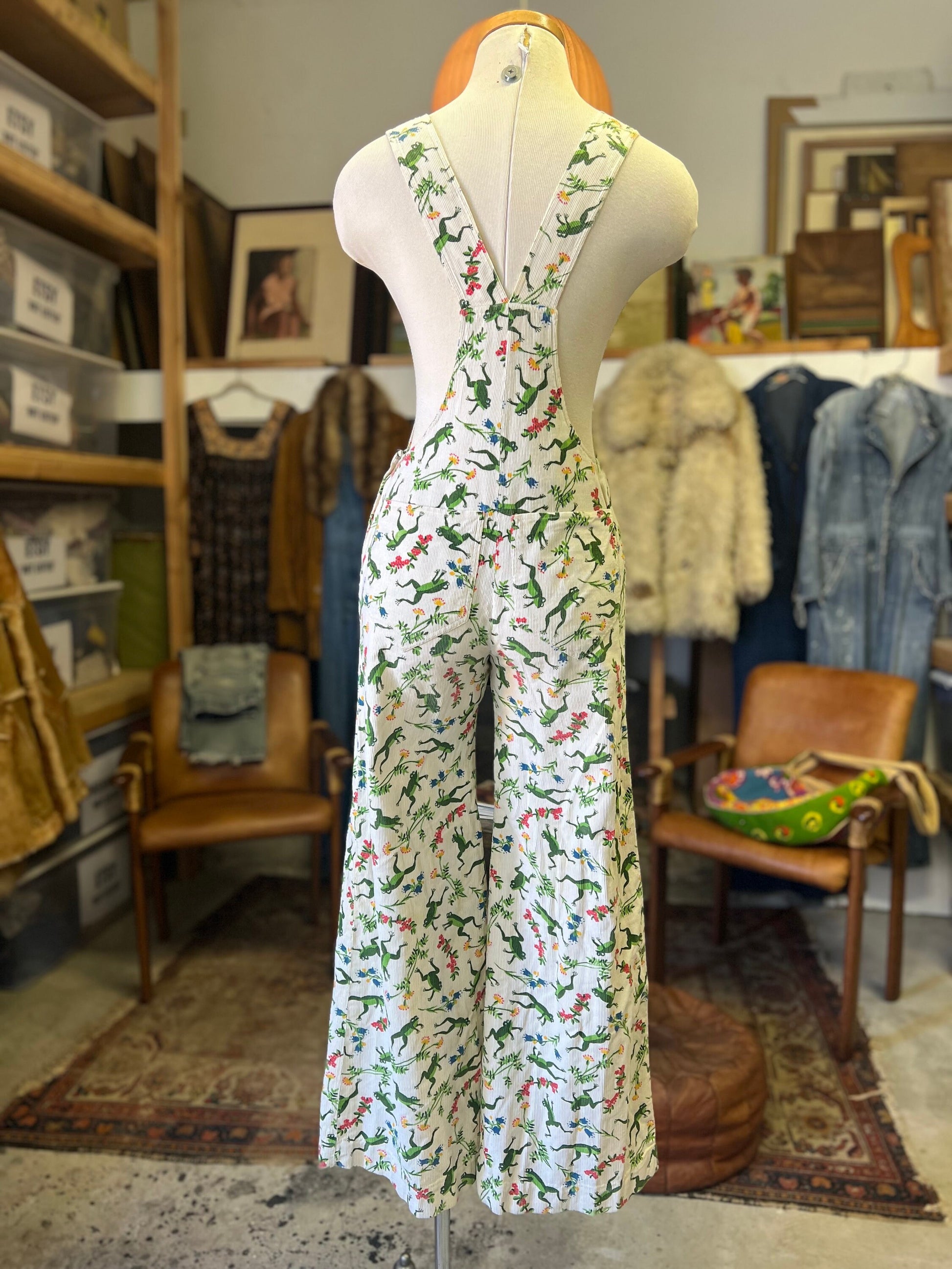 Rare Vintage 80’s Handmade Frog Print Bellbottom Corduroy Overalls XS/S