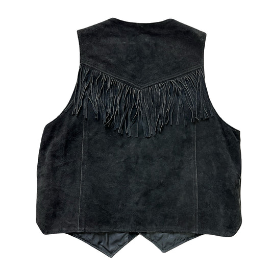 Vintage Black Suede Fringe Concho Vest Excelled L