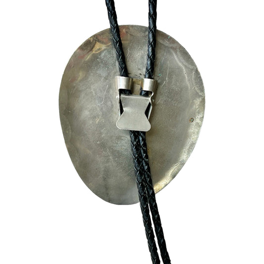 Vintage 80’s Handmade Native American Turquoise & Coral Buffalo Head Nickel Bolo Tie