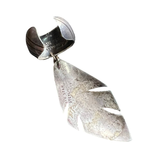 Rare Vintage Rain Star Navajo Sterling Silver & Turquoise Feather Ear Cuff