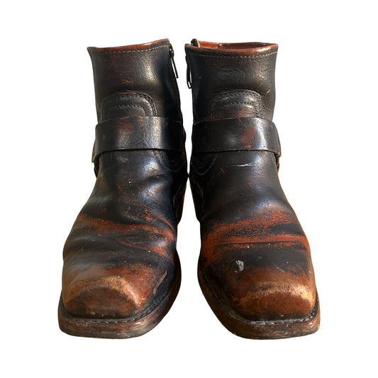 Vintage Frye Harness Ankle Zip Boots Distressed 8.5