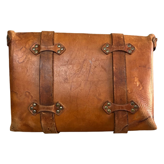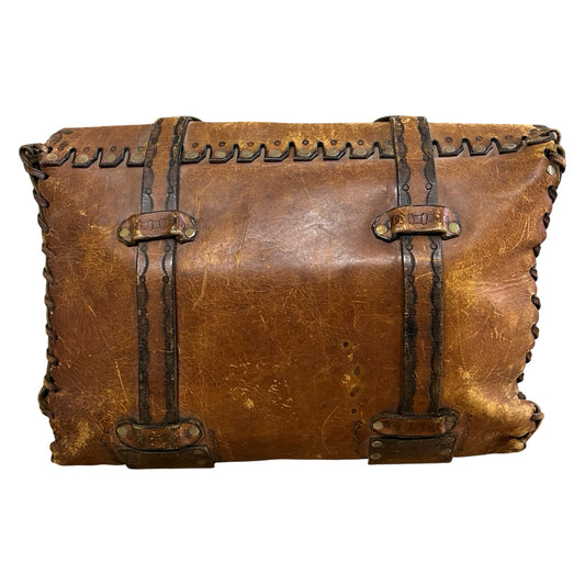 Vintage 70’s Handmade Tooled Leather Messenger Briefcase Brass Hardware