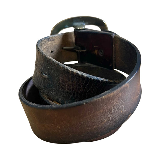 Vintage 70’s Hand Tooled Weed Leaf Brass Buckle Belt