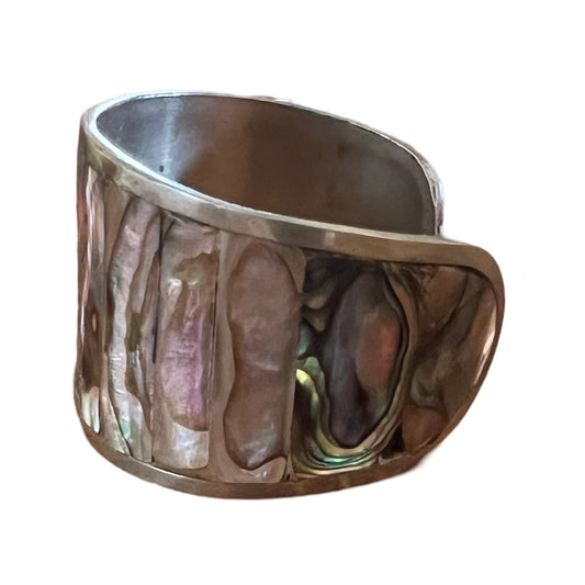 Vintage 70’s Silver Abalone Inlay Weed Leaf Cuff Bracelet