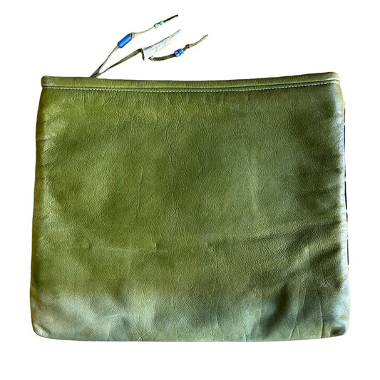 Huge Clutch Portfolio Vintage Serape and Reclaimed Leather Vintage Bead & Antler Zipper Charm