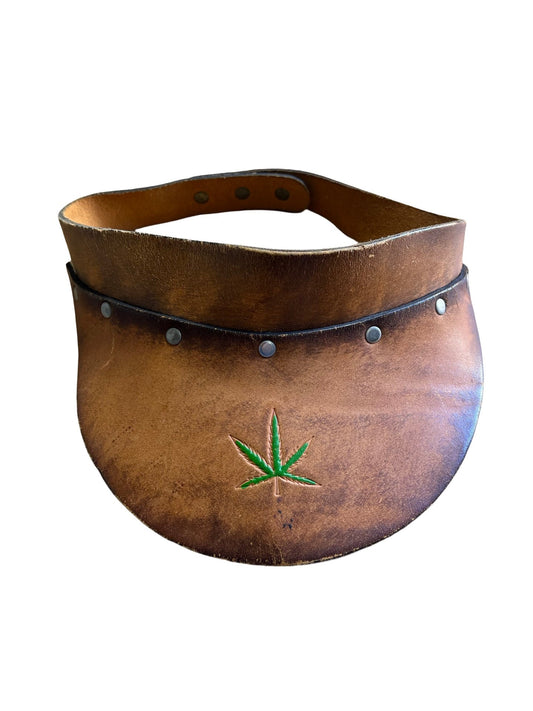 Vintage 70’s Hand Tooled Weed Leaf Leather Visor Mary Jane