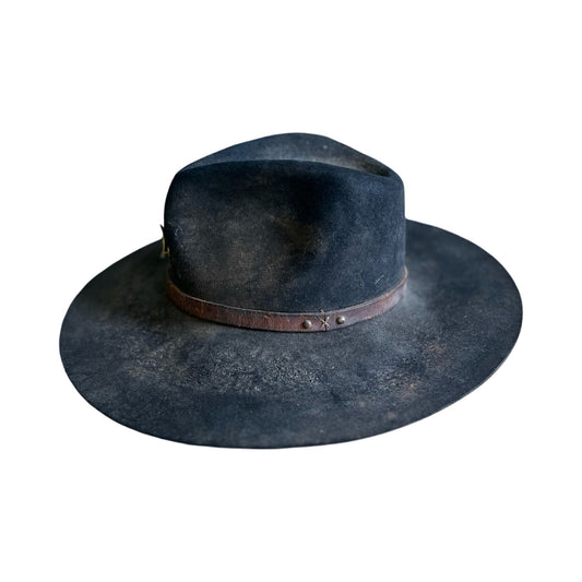 Vintage Bespoke Hat Crescent Moon Leather Band Weathered Worn Western