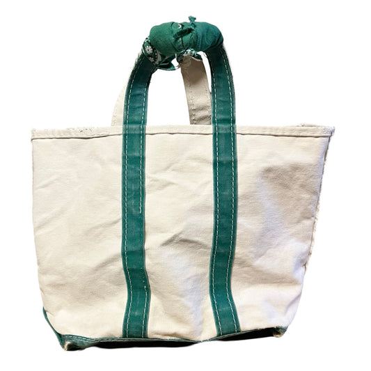 Vintage LL Bean Boat & Tote Small Distressed w/ Vintage Bandana Handle Repair