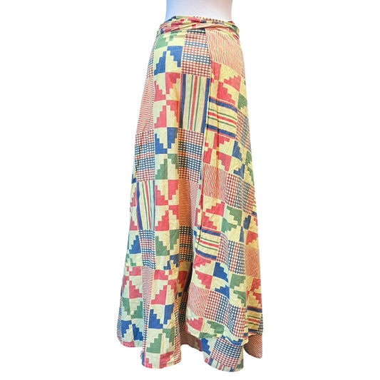 Vintage 70’s Cotton Aztec Print Wrap Maxi Skirt O/S