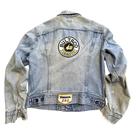 Vintage Rare Lee Sanforized Denim Jacket Motorcycle Patches Bultaco