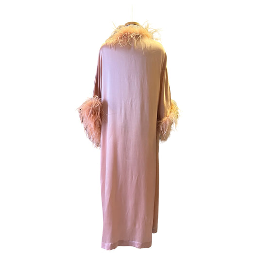 Vintage Silk & Ostrich Feather Trim Peach Silk Robe by The J Peterman Company L