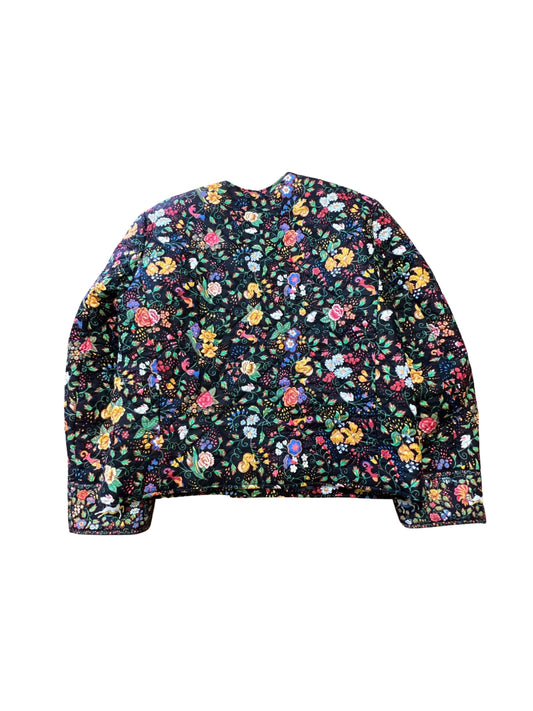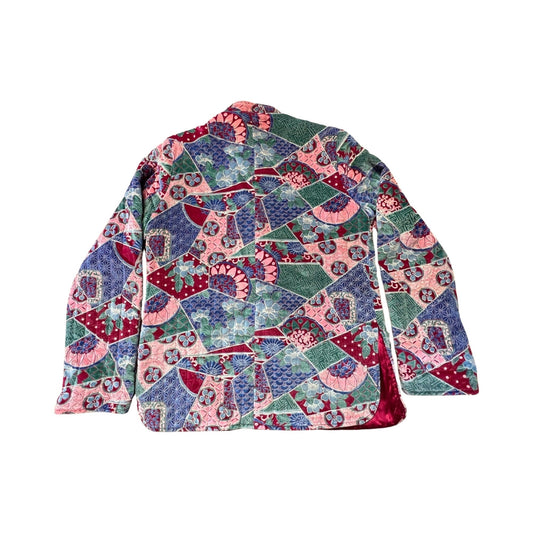 Vintage Thai Silk Quilted Crop Jacket Peacock Floral Motif Gold Lurex Accents