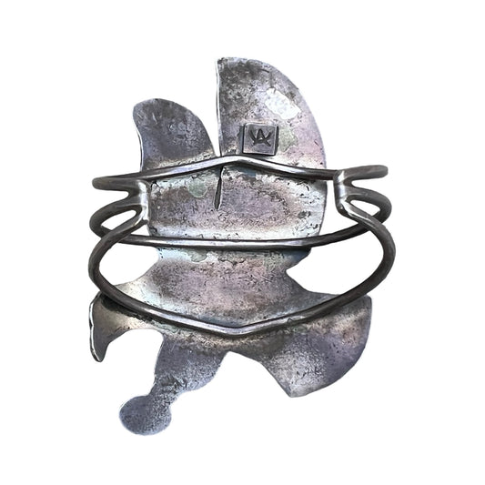 Massive Vintage Navajo Sterling Silver & Turquoise Coral Mosaic Inlay Thunderbird Cuff Signed