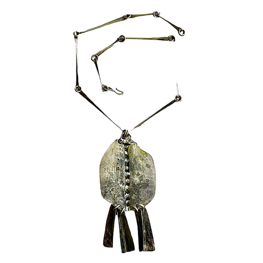 Vintage 1986 Signed Joseph Boris Modernist Brass & Silver Statement Necklace