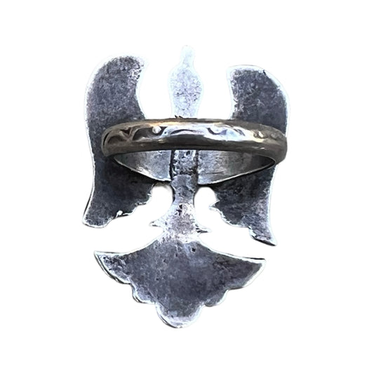 Vintage Sterling Silver Turquoise Mosaic Inlay Thunderbird Ring 5.5