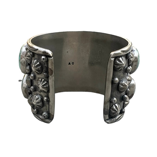 Huge Heavy Vintage Navajo Sterling Silver Turquoise Cuff Hallmark AC