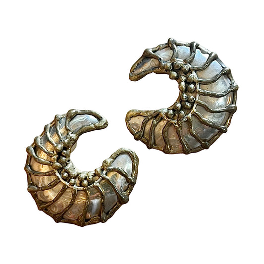 Vintage 70’s/80’s Modernist Brass & Silver Crescent Moon Earrings Hecho En Mexico