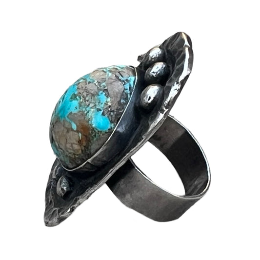 Vintage Large Navajo Brutalist Turquoise & Sterling Ring Signed Agrella 1973