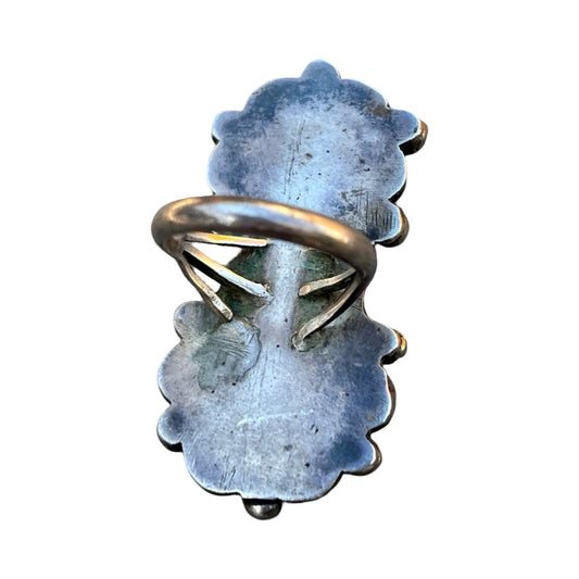 Vintage Large Navajo Turquoise Sterling Silver Two Stone Feather Ring 6.75