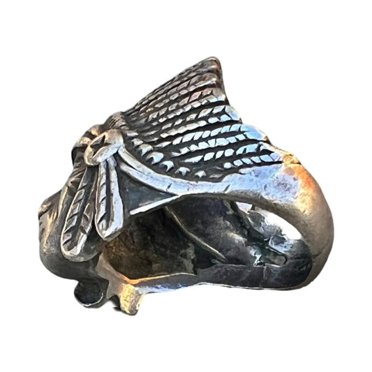 Vintage Sterling Silver Native Amercian Indian Chief Ring 6.5