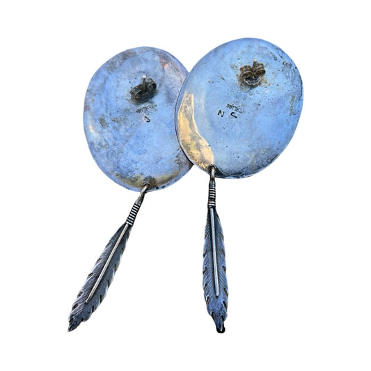 Vintage Navajo Sterling Silver Turquoise Feather Earrings Hallmark JN