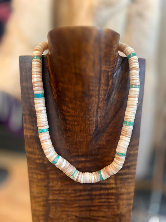 Vintage 70’s Turquoise and Heishi & Puka Shell Necklace