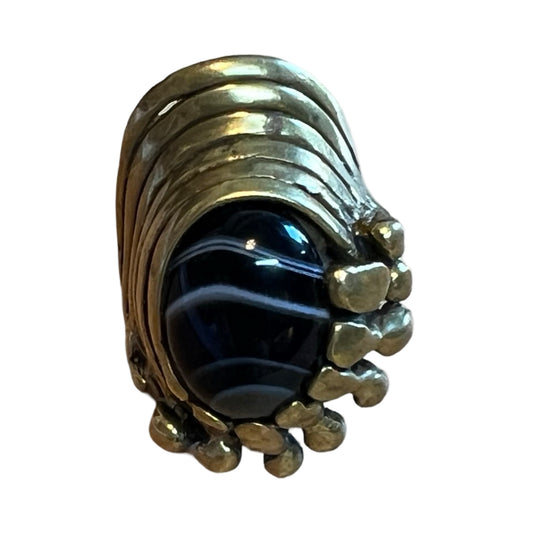 Vintage 60’s Modernist Brass Onyx Ring 6