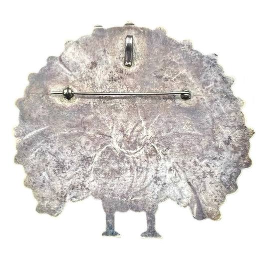 Stunning Vintage Navajo Sterling Silver Abalone MoP Turquoise Peacock Brooch/Pendant