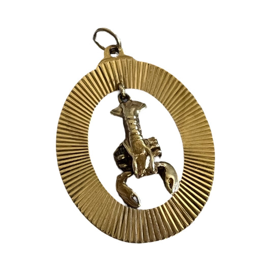 RARE Vintage 14K Articulated Lobster in Engine Turned Frame Pendant