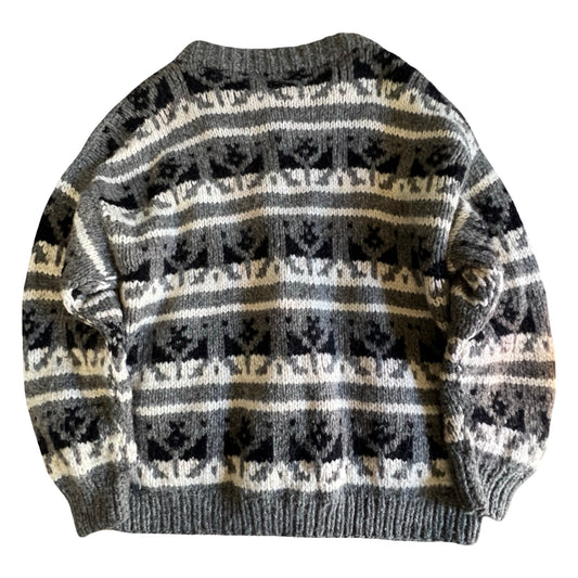 Vintage Hand Knit Wool Cowichan Cardigan w/ Pockets