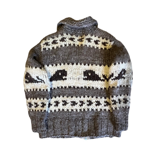 Vintage Whale Cowichan Zip Front Cardigan Sweater Soft & Thick Wool
