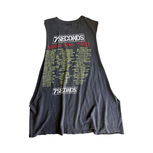 Rare Vintage 7 Seconds Single Stitch 1990 World Tour Thrashed & Cut T-Shirt