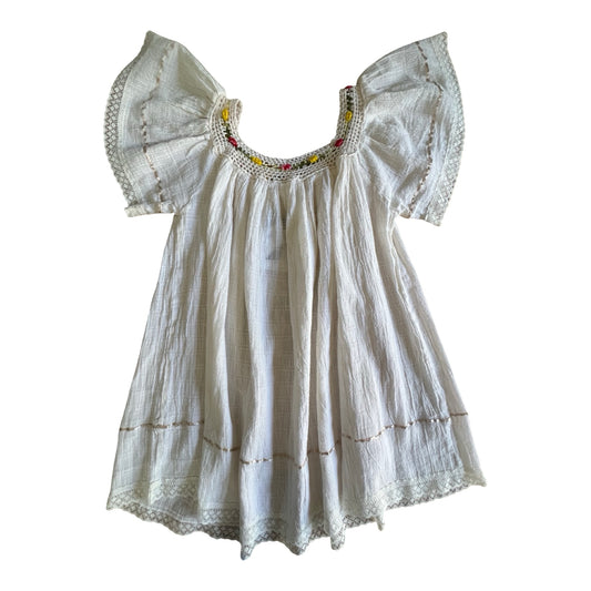Vintage Gauze Angel Top Macrame Rainbow Flowers S/M