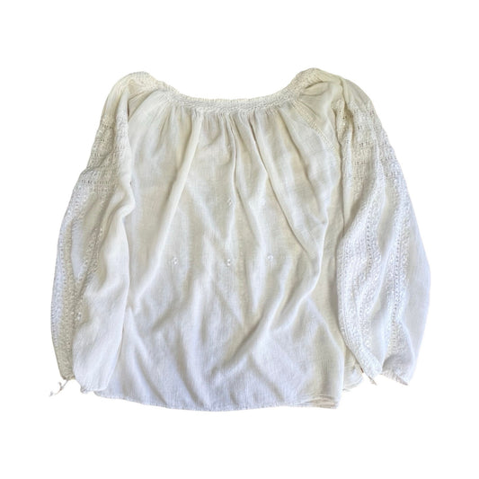 Vintage 60’s Romanian Embroidered Long Sleeve Pintuck Smocked Gauze Top