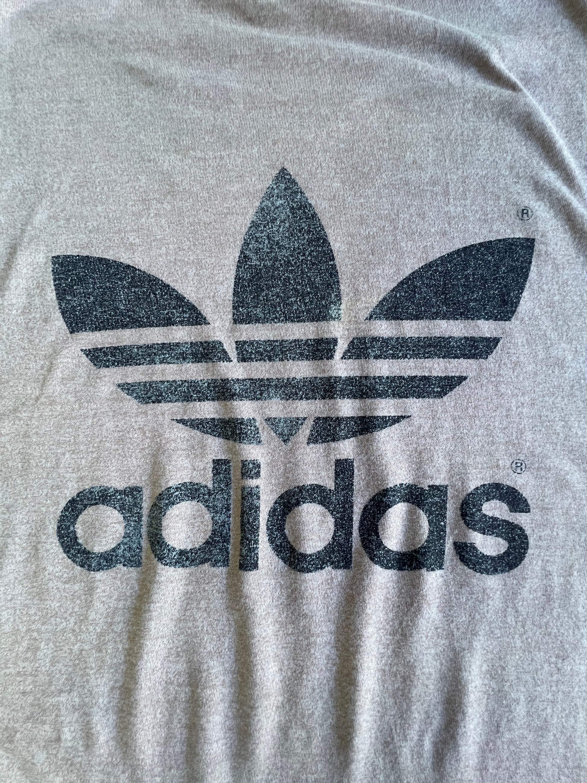 Rare color, rare t-shirt! Finally letting one go (I collect these). This vintage 1980’s single stitch Adidas trefoil logo tee is soft and thin and worn to absolute perfection. Front and back cracked graphics. Tag size XL, fits more like a modern large, measures 22” pit to pit and 27” top to bottom.