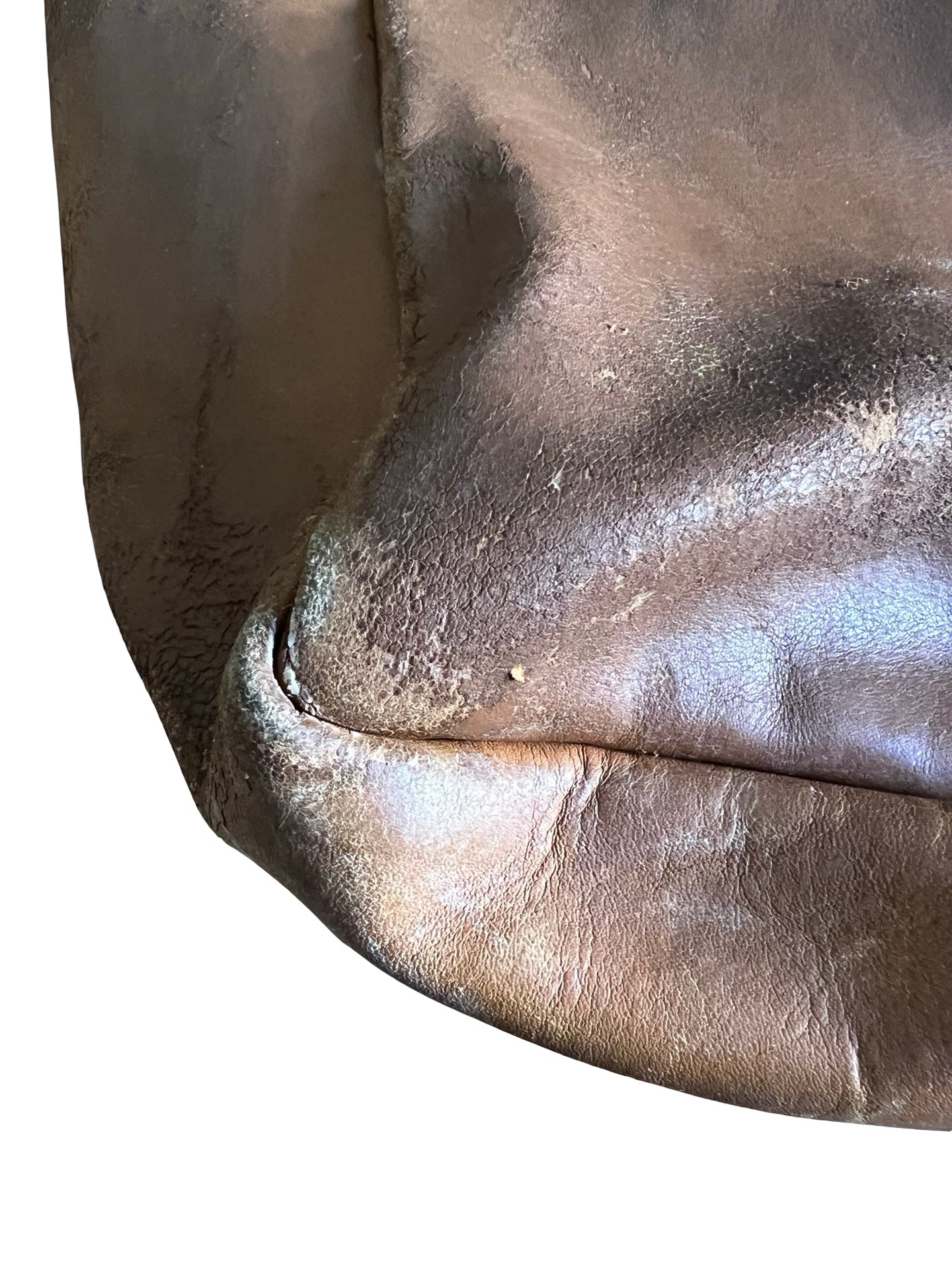 Super rare (and rarely for sale) vintage 1970’s cursive label distressed LL Bean leather tote bag in the XL size. This bag is over 50 years old and has distressing throughout consistent with age and heavy use. These bags are indestructible and are built to last a lifetime! Allover cracking, peeling, nicks, scrapes, fading, dirt, stains, and spots. This one is the oldest, most rare, and definitely the most distressed of the lot. If you’re looking for pristine, this is not the bag for you ;) If you’re looking for the most incredibly gorgeous patina on a rare classic piece of LL Bean history, this IS the bag for you! Size XL, measures 16 x 15 x 6. Has a faint scent of old leather and cinnamon. I will leave any mink oiling or polishing up to the new owner :)