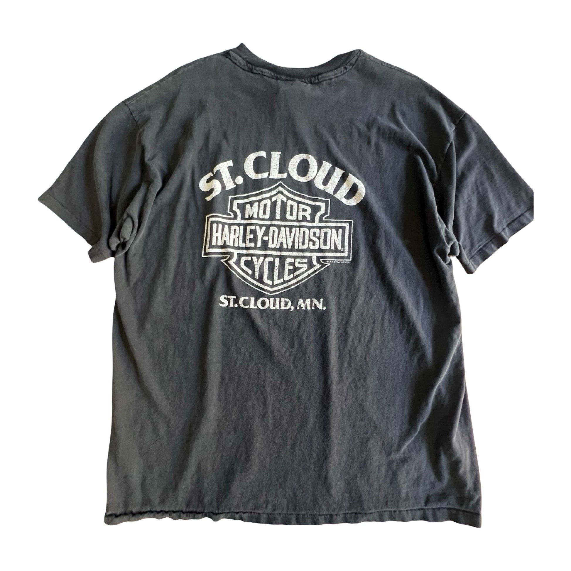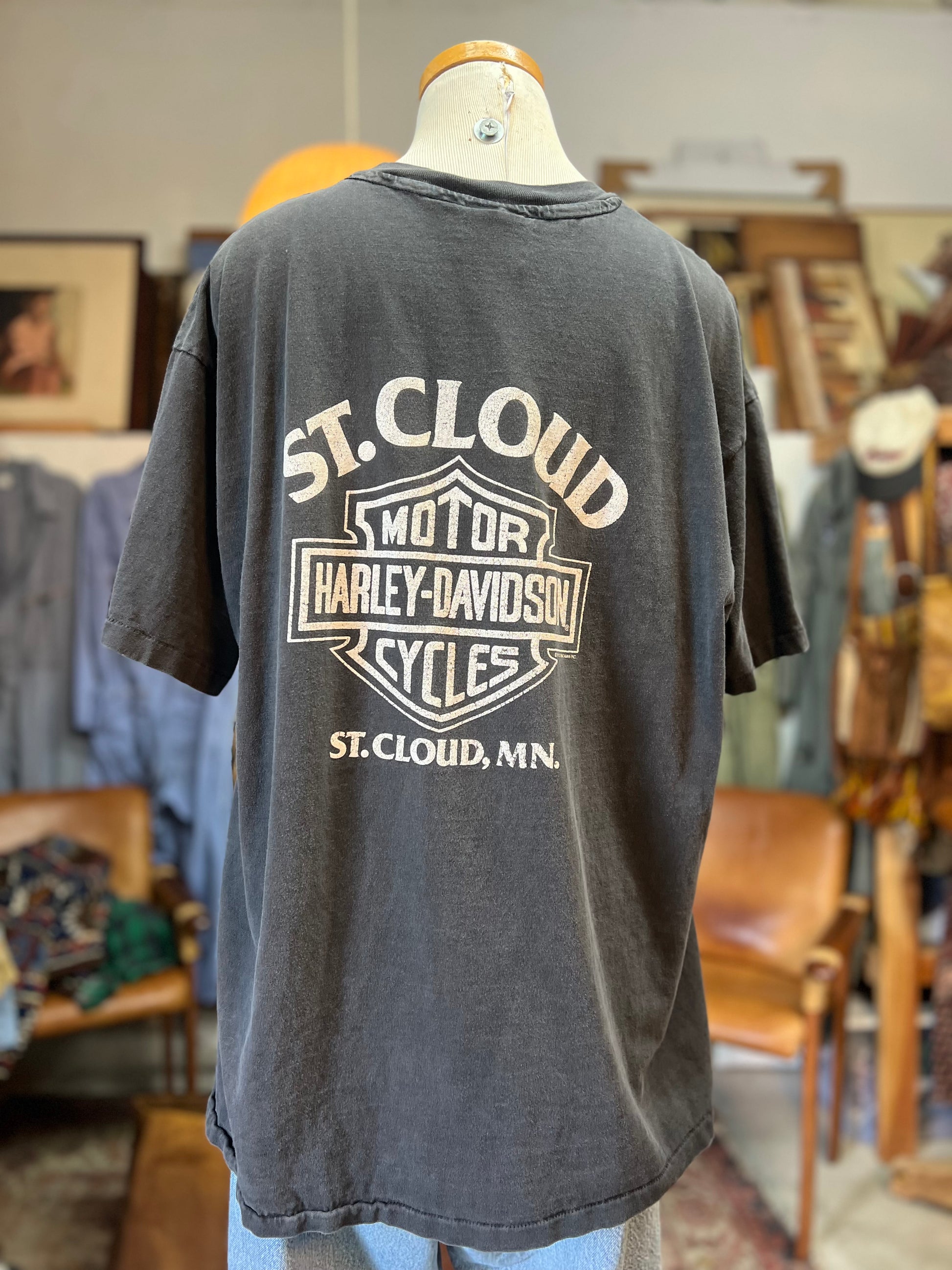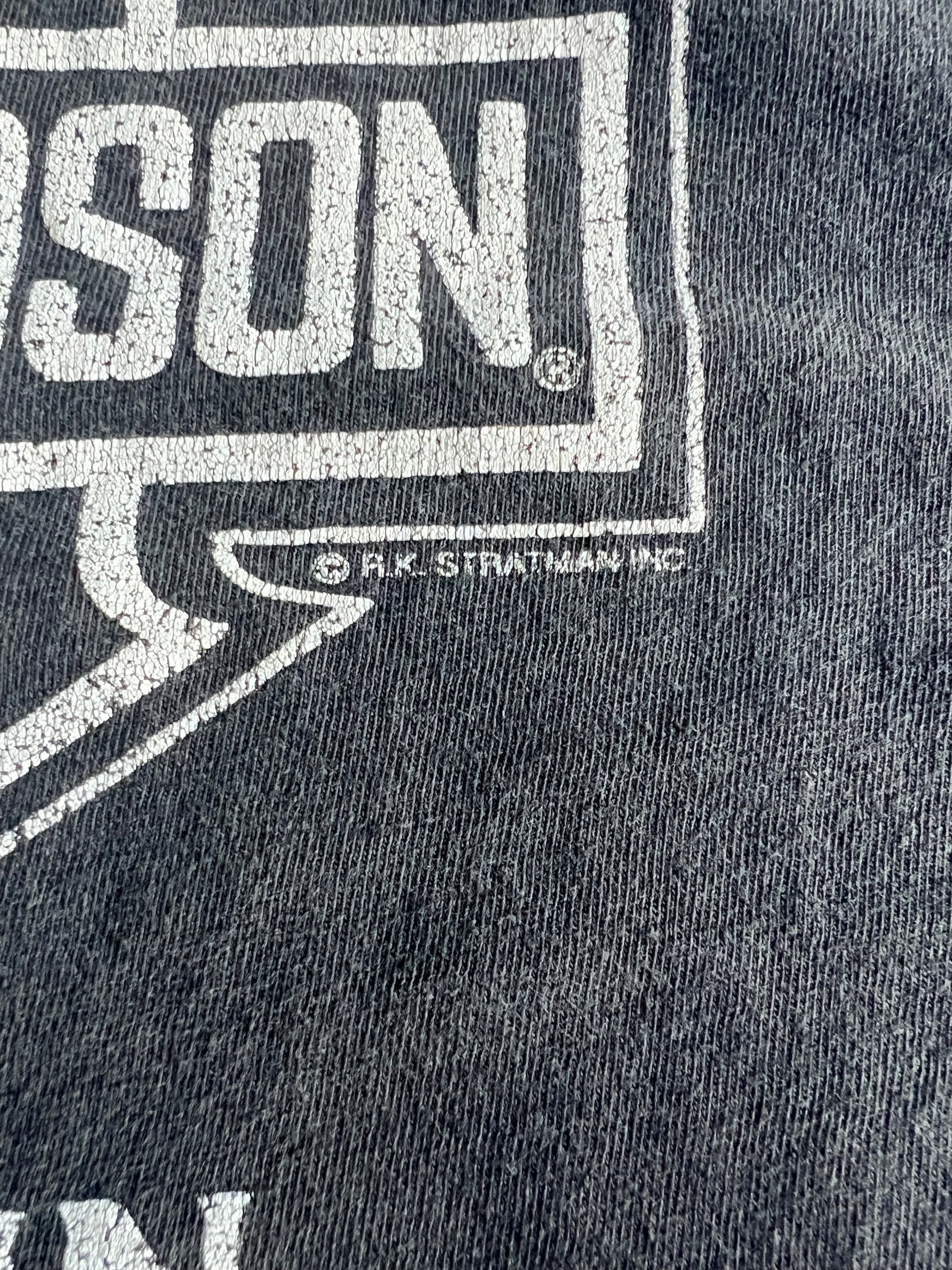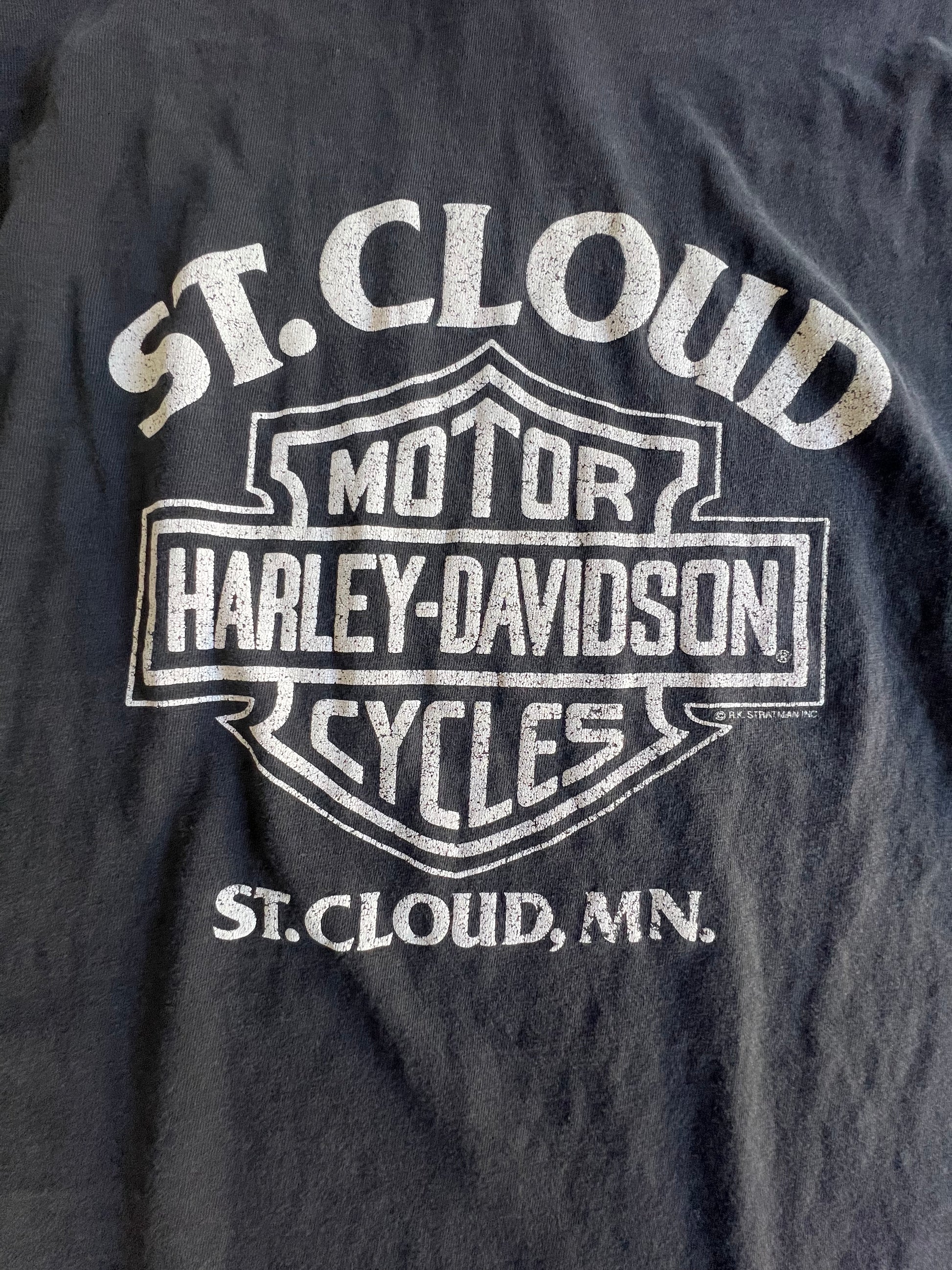 Another rare and incredible 80’s Harley t-shirt! Single stitch in a rare XXL, front graphic reads “If I have to explain, you wouldn’t understand”. Beautiful back hit St. Cloud, MN. Faded cracked graphics, soft and thin tee. Measures 24” pit to pit and 29” top to bottom. A rare gem, a real good one.