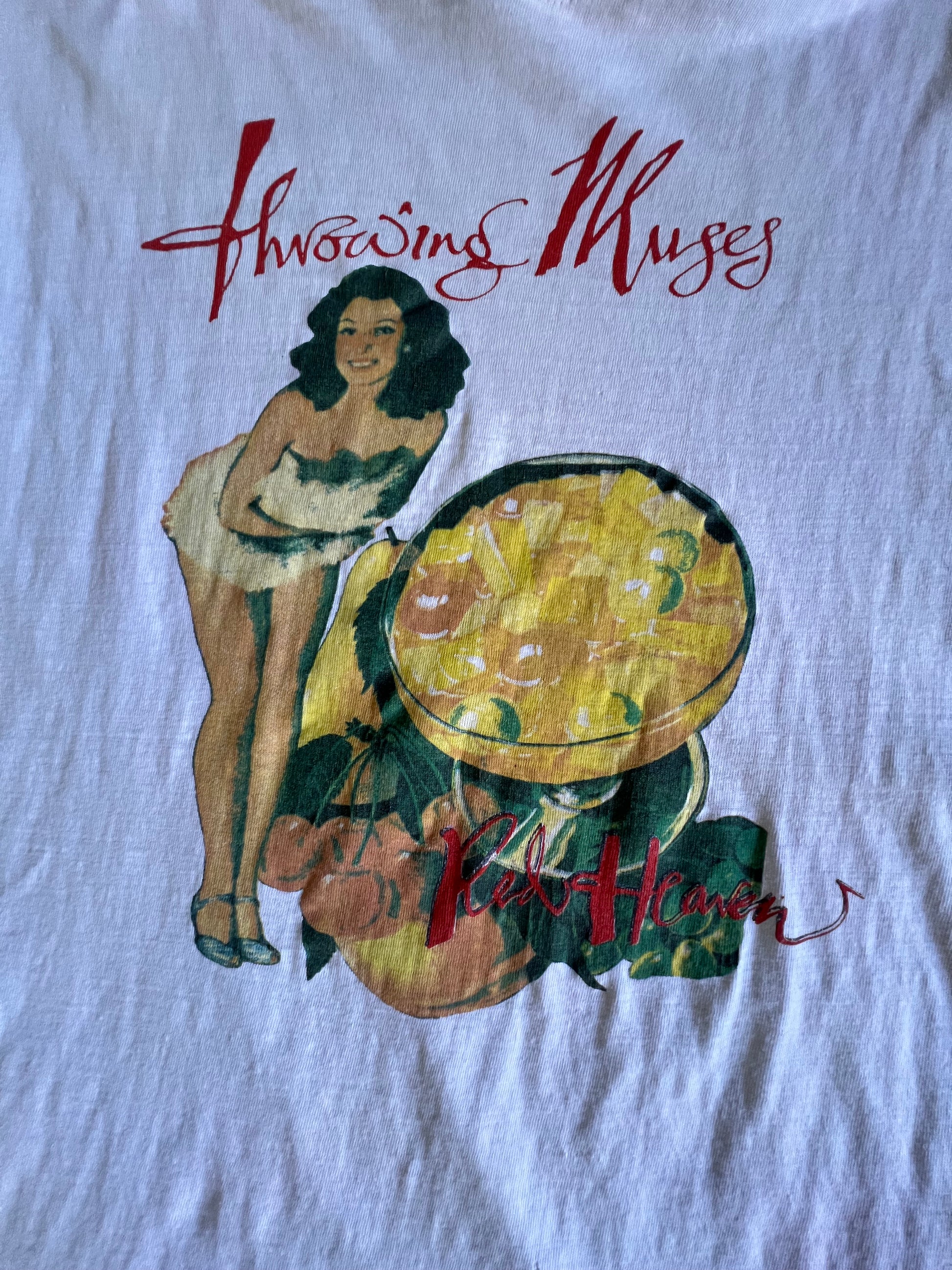 Rare vintage Throwing Muses 1992 Red Heaven distressed t-shirt. Soft and thin with a few marks and some holes on back (see pics). A nice find considering its age and the fact that you don’t come across authentic Throwing Muses shirts very often! Size XL, measures 22” pit to pit and 27” top to bottom.