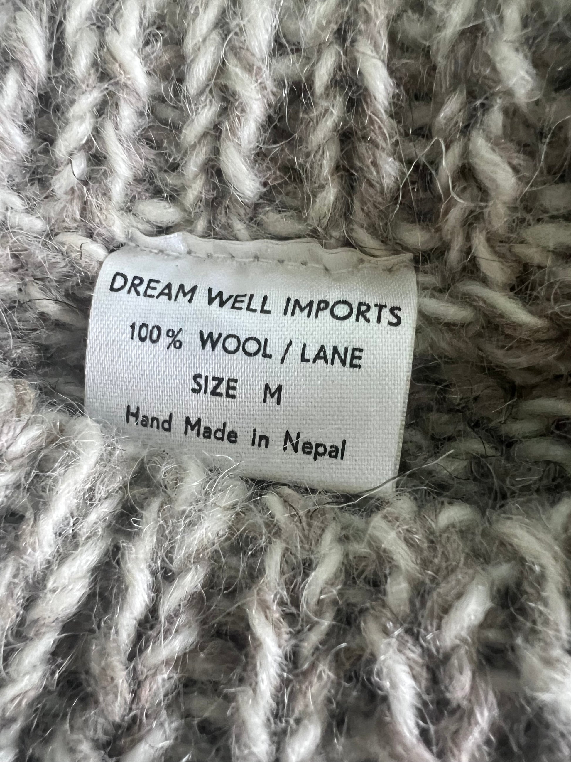 So rare to find a good true vintage hand knit Yin Yang sweater, and here it is! Chunky hand knit in Nepal, this 100% sweater features a yin yang design all around the top of the sweater….front, back, and sleeves. Tagged size medium, measures 23” pit to pit and 28” top to bottom (this one is definitely more fitted than the usual oversized pieces I sell, otherwise I’d be keeping it!). From Dream Well Imports in Canada, hand made in Nepal. This one is a rare beauty!