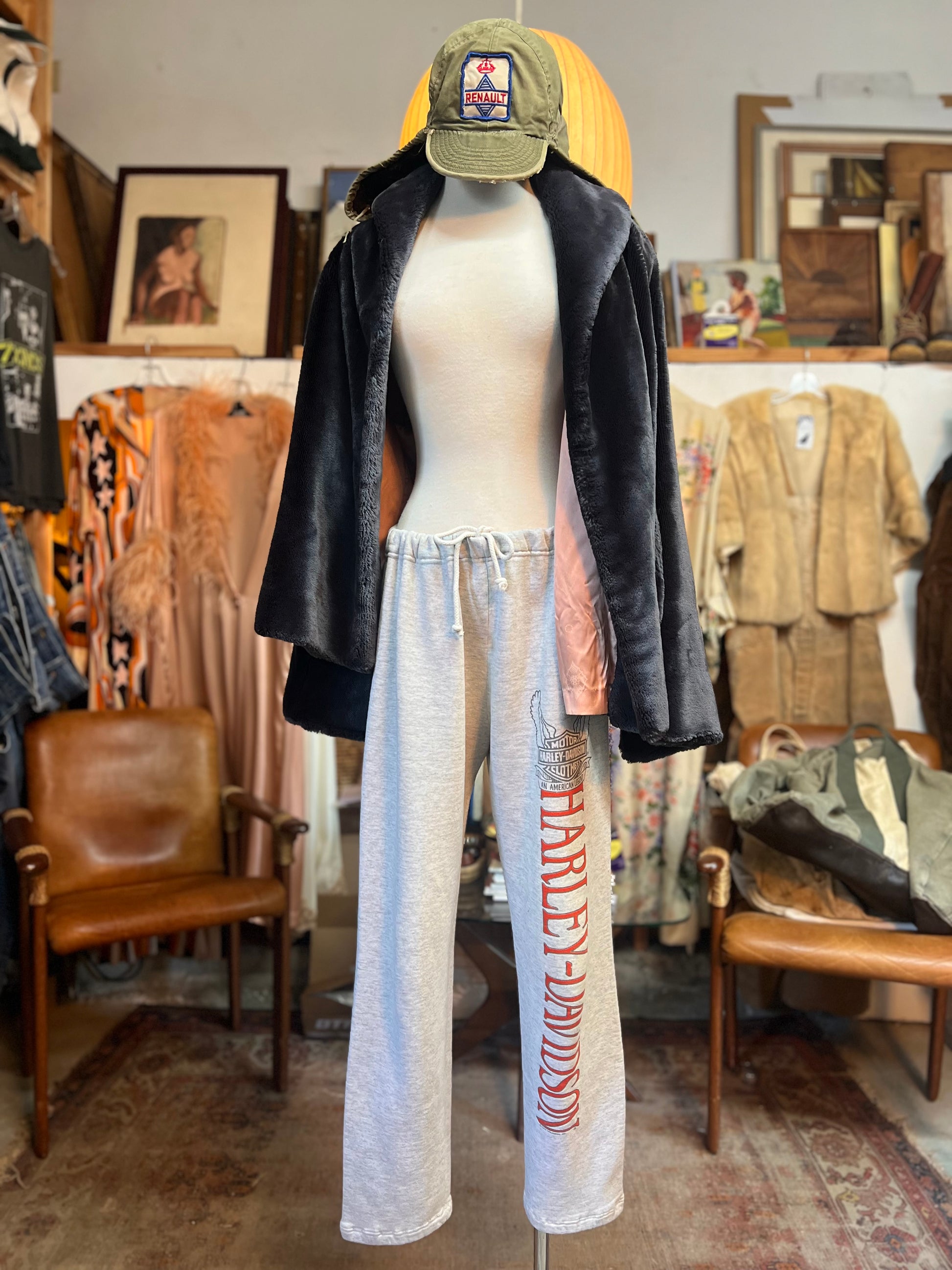 These rare and collectible 1980’s vintage Holoubek Harley Davidson sweats are next level amazing!!! The FIT is outta this world. Perfectly broken in and soft with faded graphics. No elastic at the bottom is what lets them drape the way they do. Honestly, the best pair of vintage Harley sweats I own!! Jerzees tag size M, measures 18” max waist and 30” inseam. Copyright mark 1989 Holoubek, Inc.