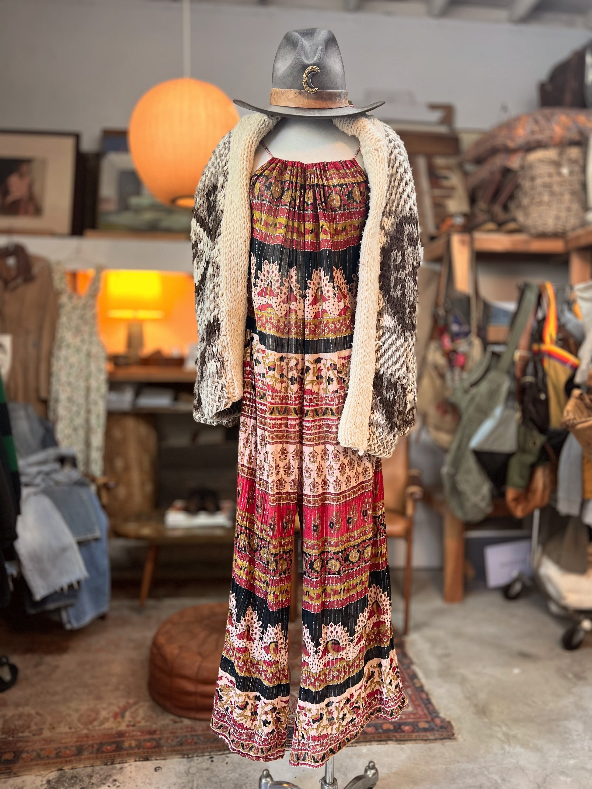Rare Handmade Vintage India Block Print Jumpsuit w/ Pockets Free Size