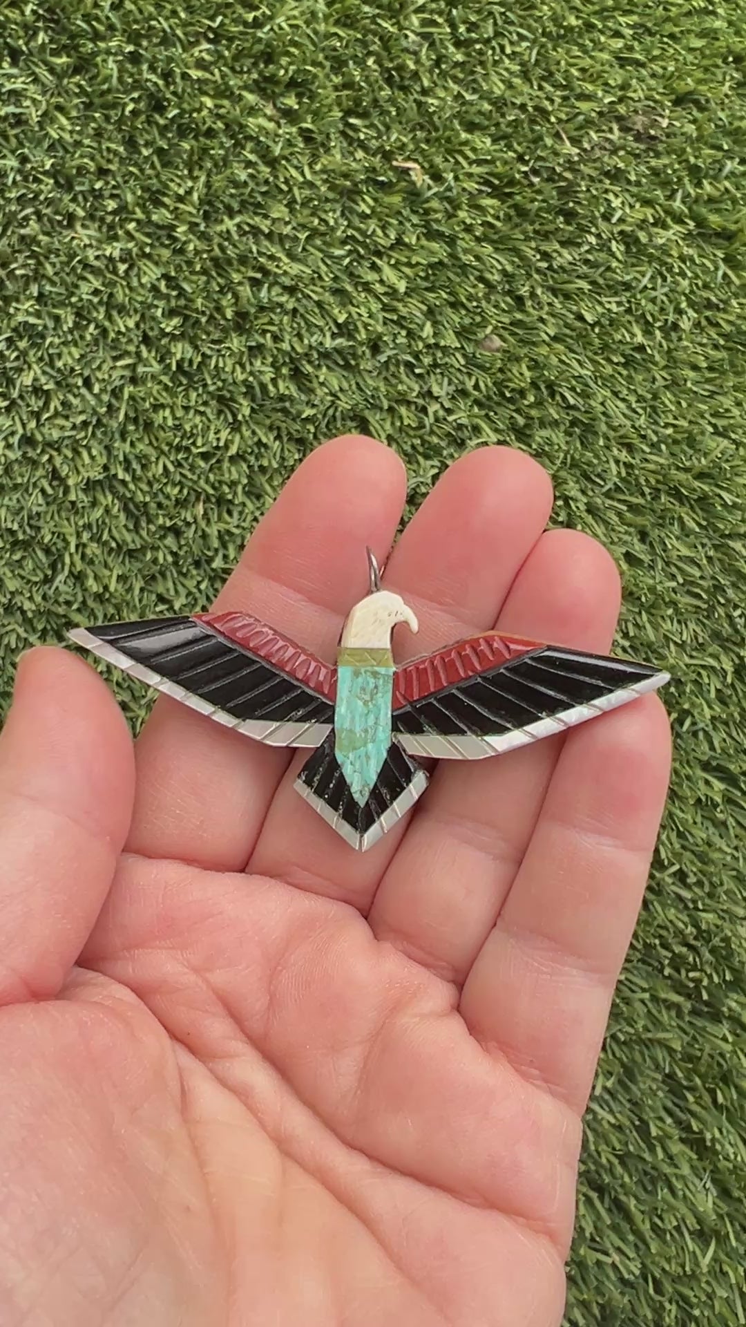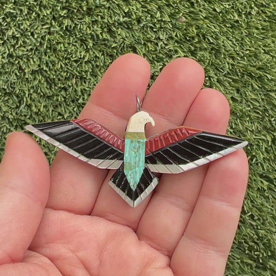 RARE Vintage Zuni Native American Inlay Thunderbird Pendant