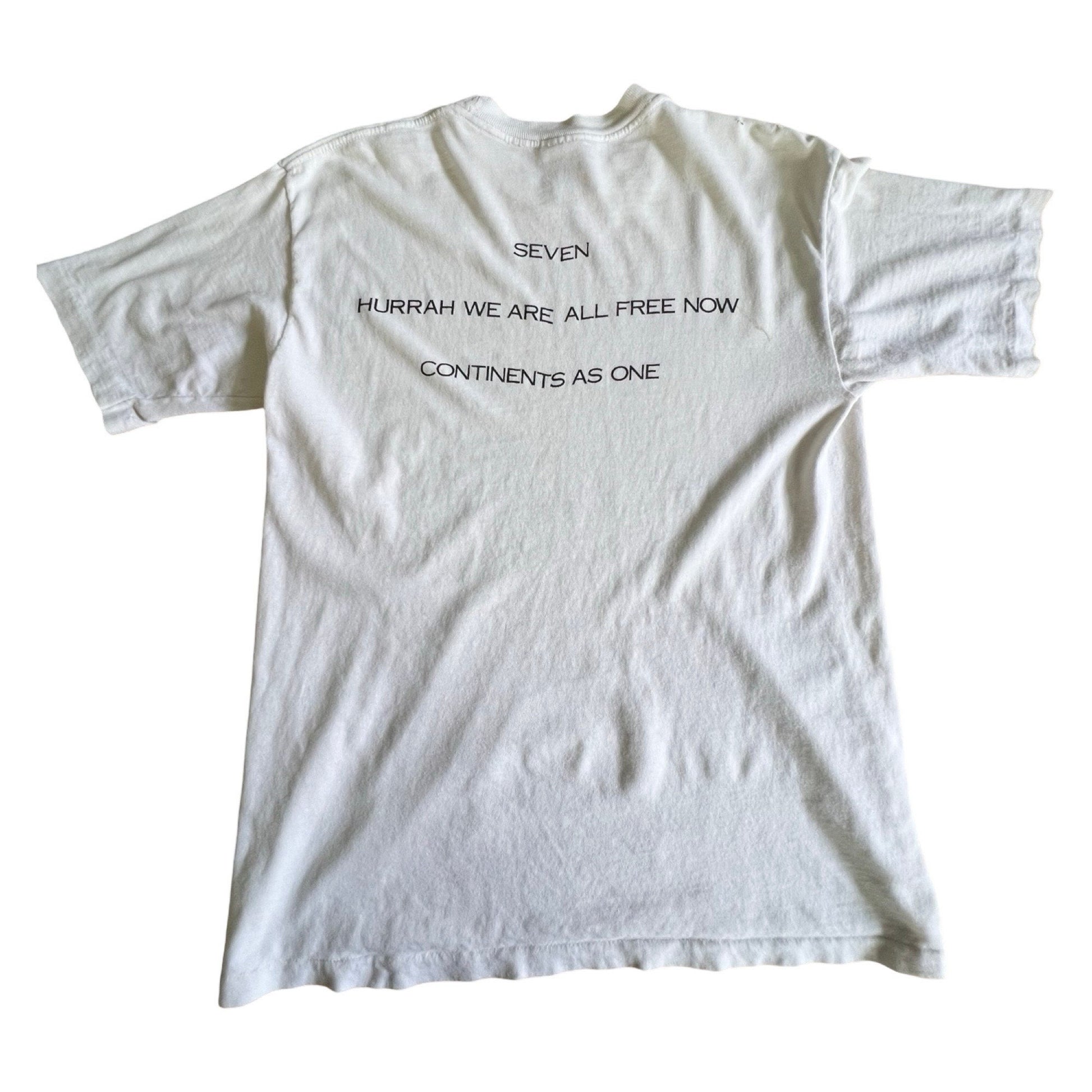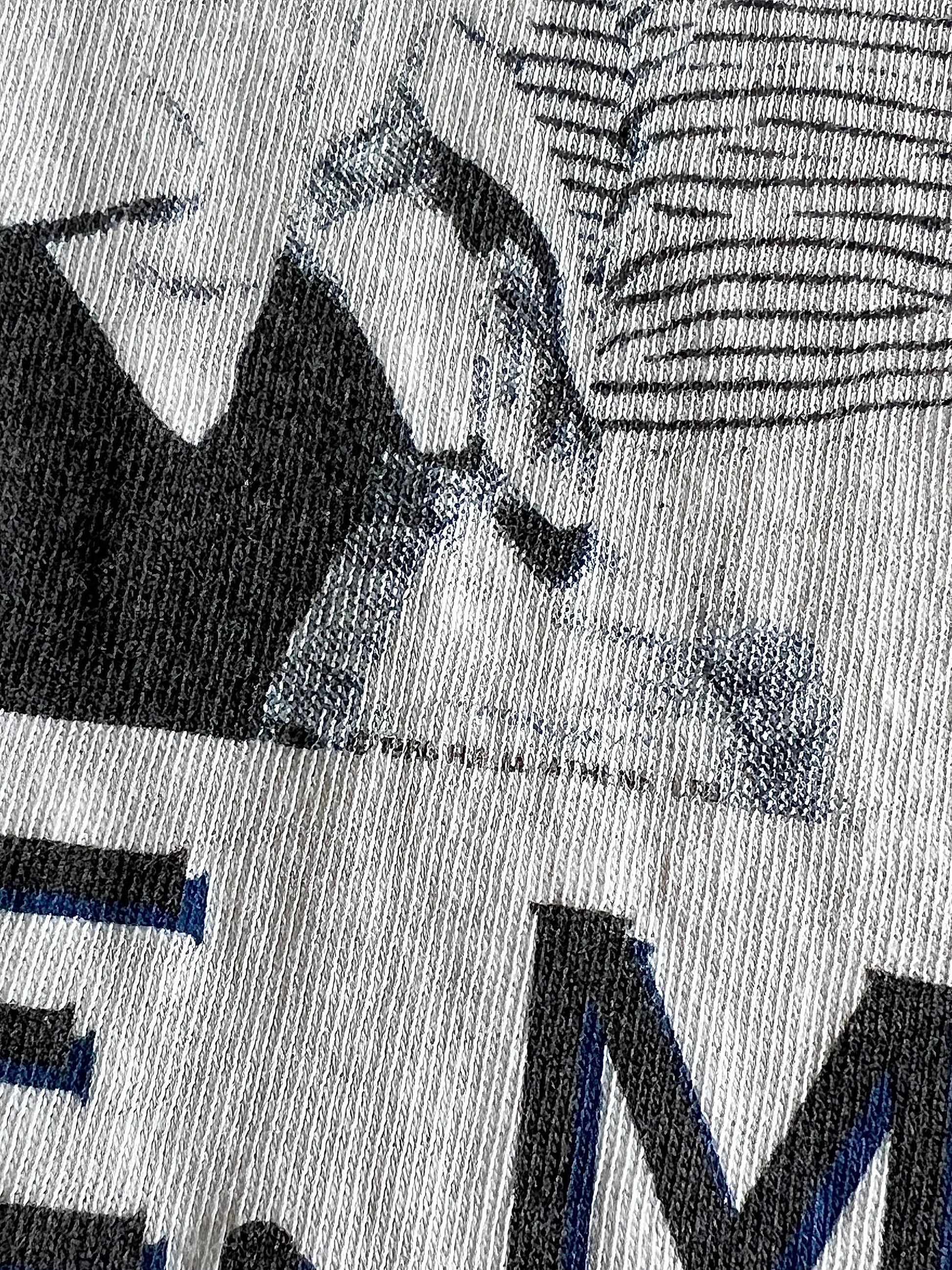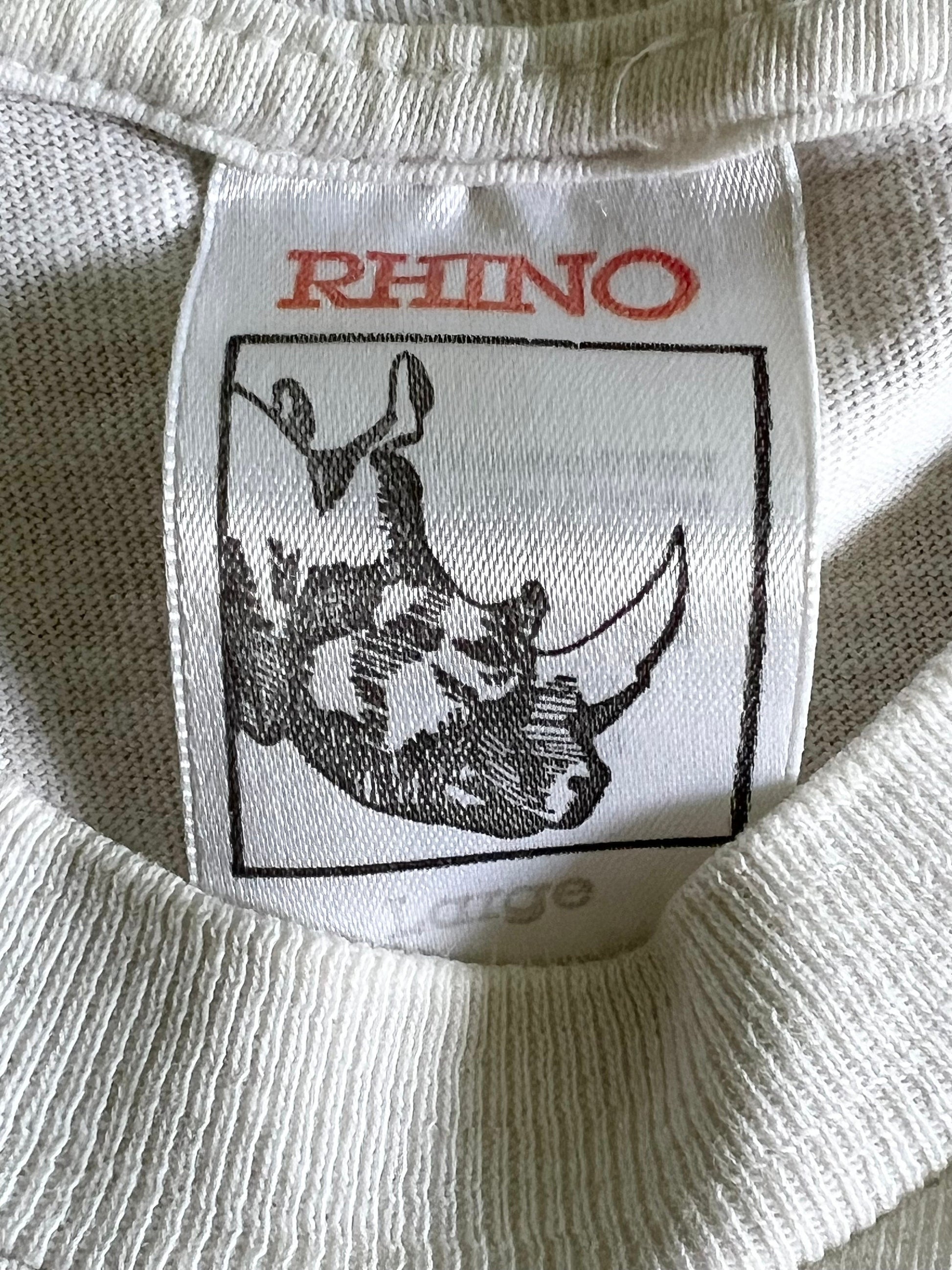 Rare vintage REM promo single stitch t-shirt featuring front & back graphics. Copyright mark 1986 REM Athens LTD under front graphic. Rhino tag size L measures 19” pit to pit and 26” top to bottom. Small holes and stains throughout and some under arm stains that may bleach out (didn’t try). Shirt is soft and thin and well