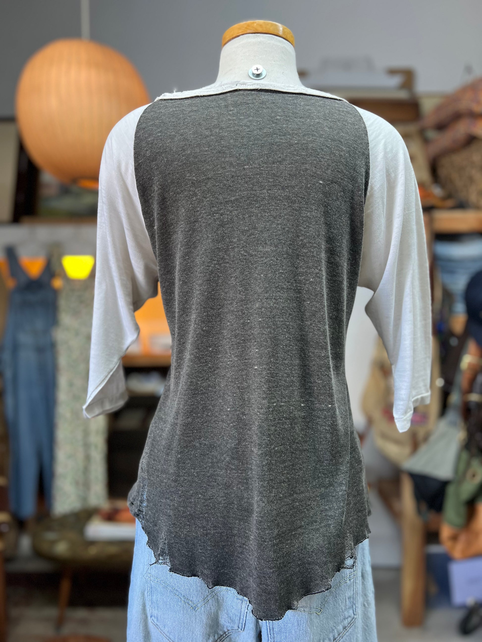 I’ve been collecting vintage rock tees for over 25 years and I have never ever seen another one like this!!! Vintage Stevie Wonder raglan tee, worn to perfection, paper thin, super soft, single stitch, raw hem, loose threads, some holes throughout, cut sleeves at elbow. Measures 17” pit to pit and 24” top to bottom. This shirt is an absolute unicorn of a shirt and an amazing collectible for any Stevie Wonder superfan!! This tee is from the two sold out shows he did in Pasadena in December of 1971. Stevie Wonder performed in Pasadena, California, on December 17 and 18, 1971 at the Pasadena Civic Auditorium. These shows were part of his "The Stevie Wonder Live" tour, which featured music from his albums "Where I'm Coming From" and "What's Going On". These concerts are remembered as part of his rise to even greater fame during the early 1970s. The grail of vintage rock tees and an absolute gem in my collection. Rock museum worthy!!