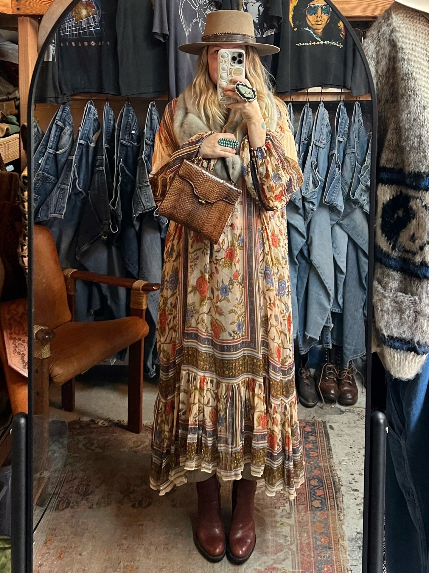 What a sweet and classic little subtle statement purse. Vintage 1950’s snakeskin purse with gold metal latch closure (in perfect working condition), top handle, interior pocket and roomy inside. Lovely vintage condition with some minor scuffing to the corners (shown). Measures 8.5x7x3. Stamped inside Sydney California.