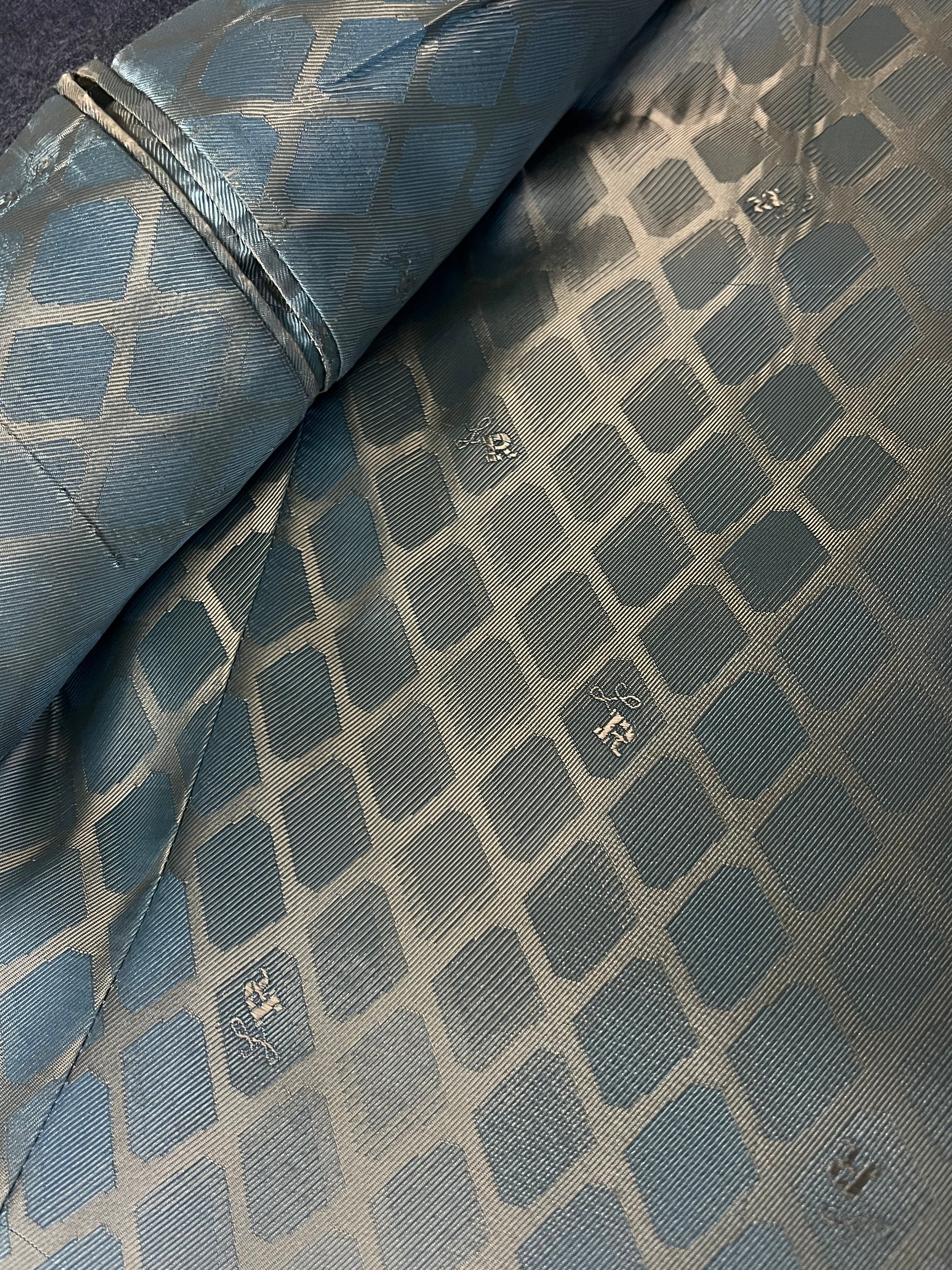 Incredibly chic 1970’s Union Made Louis Roth silk lined blazer in a beautiful grayish blue color. Tags read Tailored in California, Union Made, Louis Roth Clothes. Size 43, measures 22” across chest and 31” top to bottom.