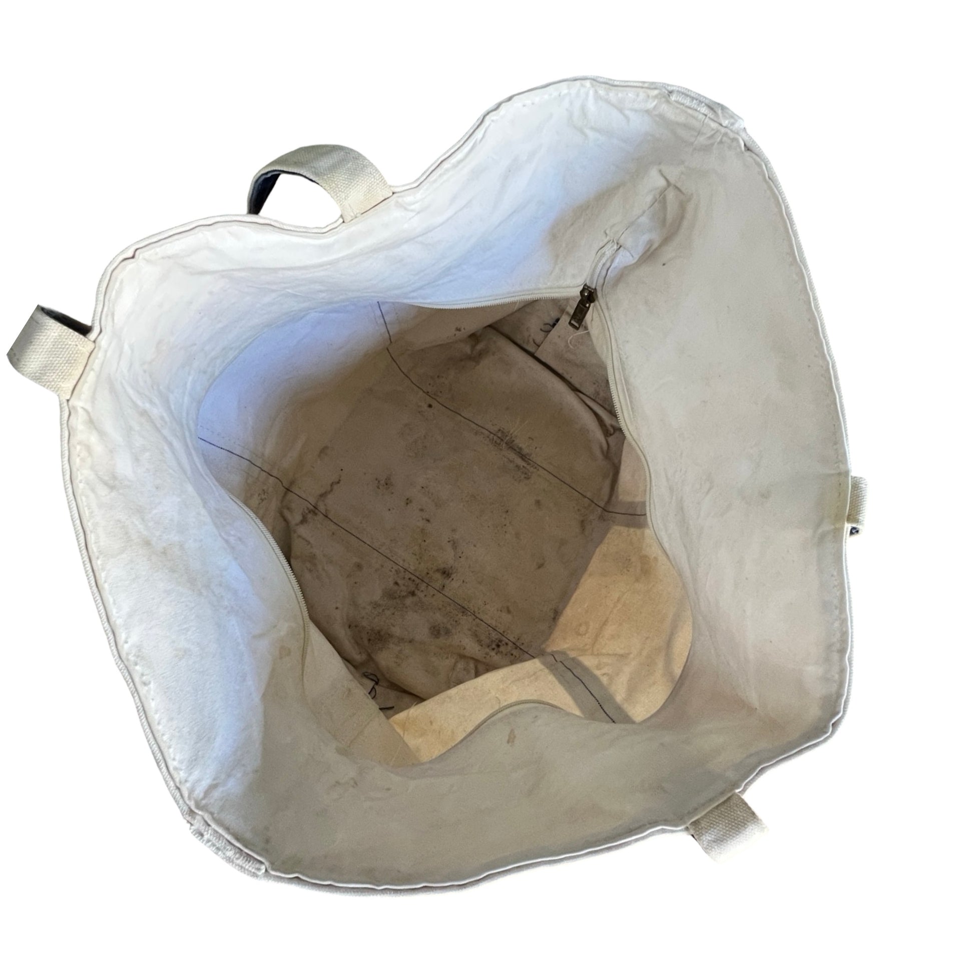 Another great oversized authentically well-worn and well-loved vintage 80’s LL Bean boat & tote. Classic faded navy, zip top, short handles, distressing throughout (spots and stains interior and exterior). A beautifully worn in canvas tote beats a crispy stiff new one any day! This one has been freshly laundered and is ready to go.