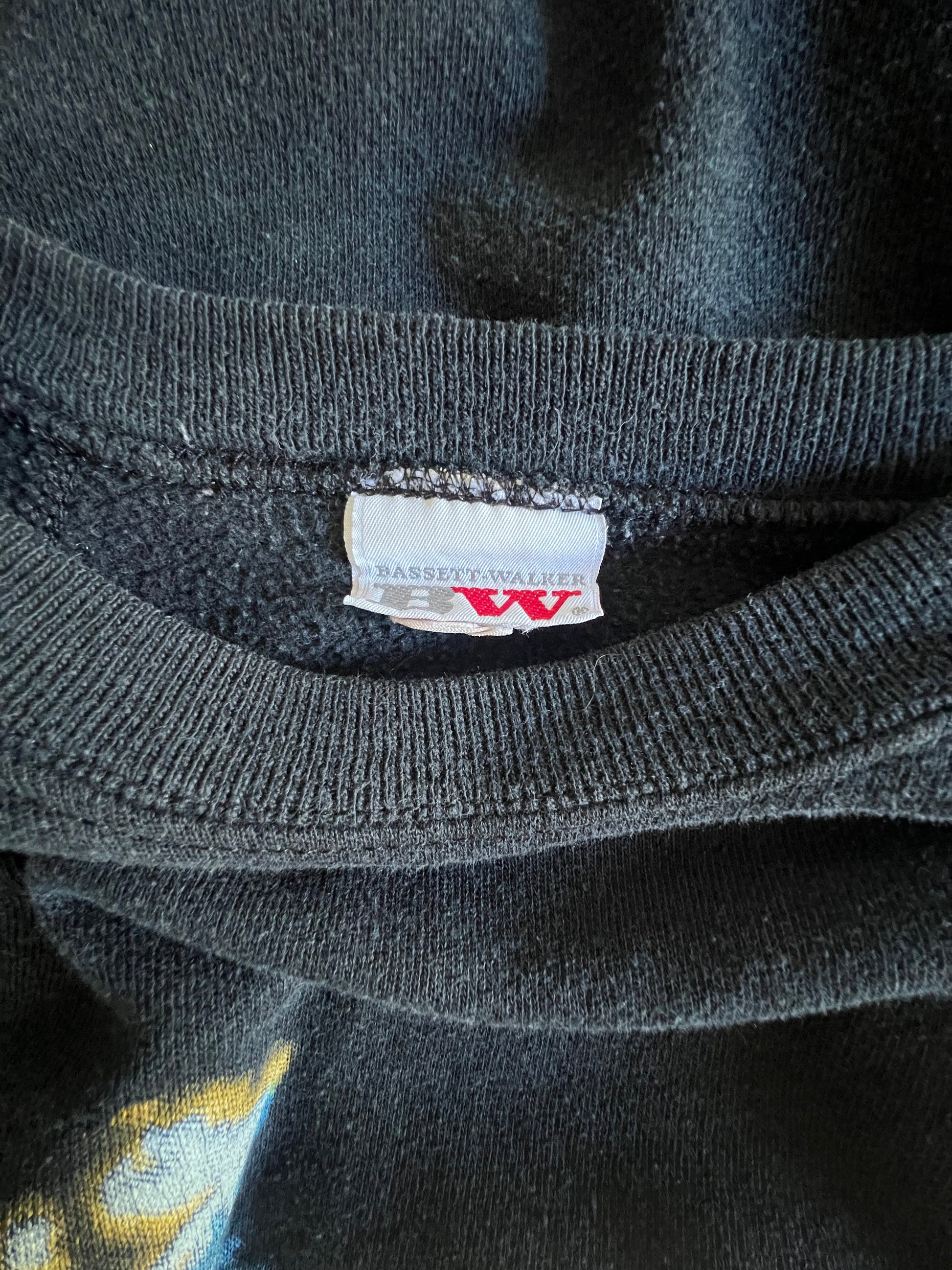 Such a great one!!! Rare vintage Harley raglan crewneck, soft and worn to perfection. Front graphics copyright mark 1930, back graphic Sturgis 50th Anniversary 1990. Some overall distressing consistent with age and a few random paint spots. Tag size XL but fits more like a boxy large, measures 23” pit to pit and 23” top to bottom.