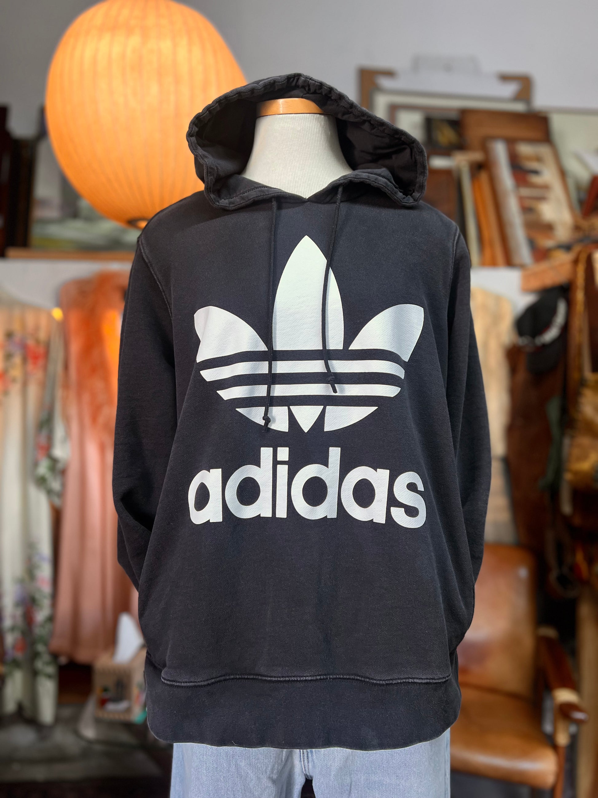 Such a great hoodie!!! Vintage 90’s Adidas trefoil logo hoodie with side pockets. Tag size XL, measures 24” pit to pit and 24” top to bottom for a slightly oversized boxy fit. I would love in this thing…the kind of hoodie you can dress up or down!