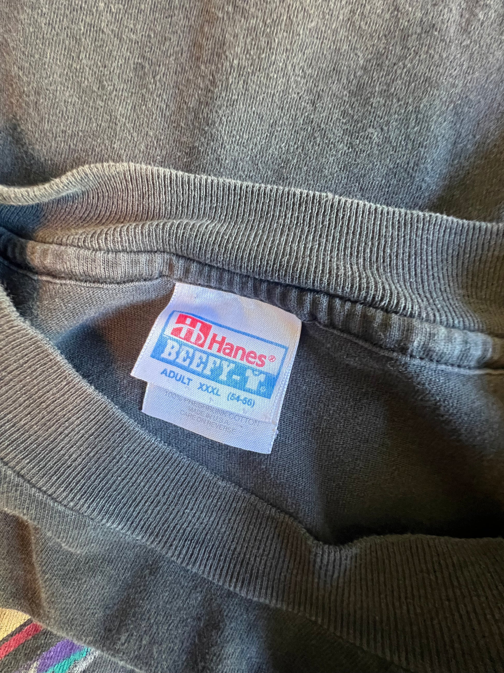 Vintage single stitch super oversized early 90’s Indian Motocycle tee. Front and back cracked graphics, Valley Cycle Castro Valley, California. Copyright mark 1993 Official Easy Riders. Tag size XXXL, measures 27” pit to pit and 30” top to bottom.